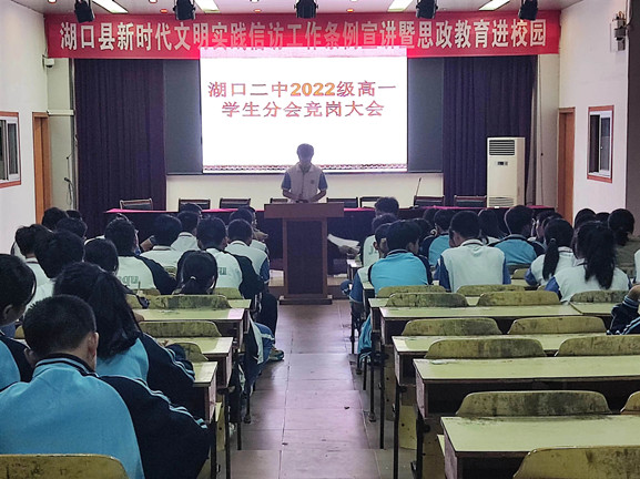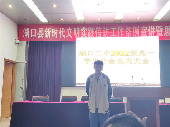 为了加强团队建设,给青少年搭建展现自我的平台,及时补充新鲜血液,确保各项工作顺利开展,9月18日,湖口二中开展高一年级学生会竞选活动。