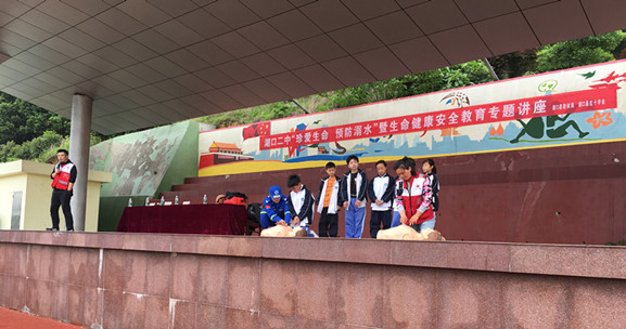 为进一步加强防溺水安全教育,提高学生的自救互救能力,减少溺水事故的发生,5月6日,由九江市红十字会、湖口县红十字会、县教体局联合组成的“防溺水”安全知识宣讲团来到湖口二中,为我校学生带来了一场精彩的“珍爱生命,预防溺水”暨生命健康安全教育专题讲座。九江市红十字会救护培训中心专家钱逢鑫、叶国兰,湖口县红十字会常务副会长何文燕、蓝天救援队队长刘玉春,湖口二中副校长周丽华出席活动。活动由我校党总支委员、政教处主任徐立军主持。