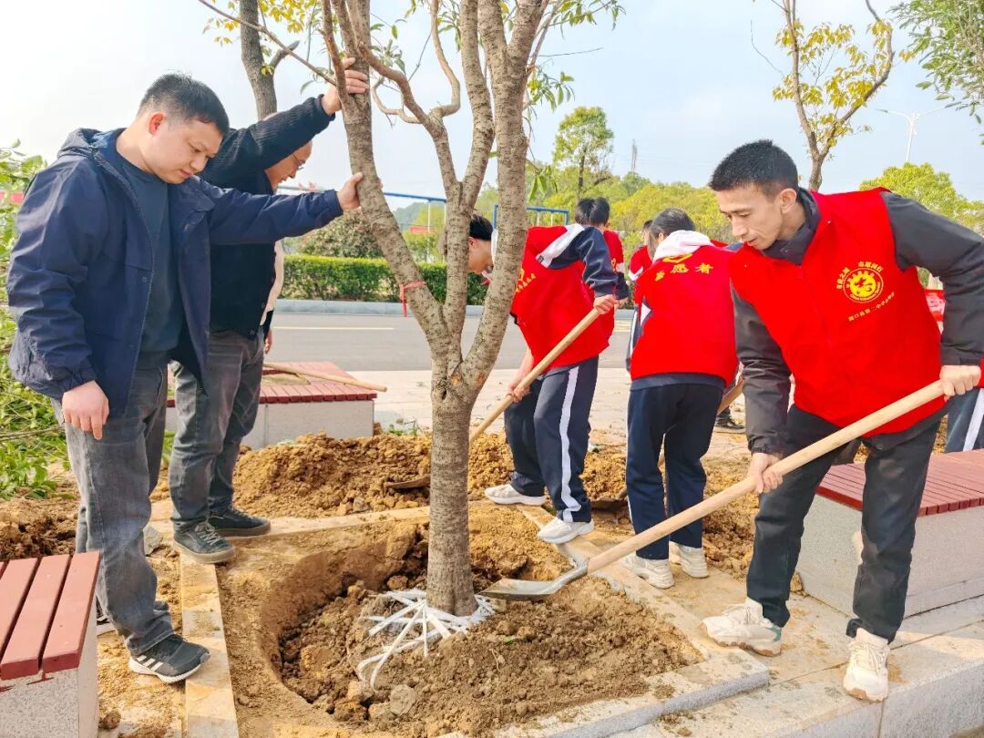 春回大地,草木萌动。3月12日,在第48个植树节到来之际,湖口二中以“弘扬雷锋精神 共筑绿色校园”为主题,开展校园植树实践活动。校党委书记张瑞珍,校党委副书记、校长张勖等校领导与学生代表一同挥锹培土、浇水扶苗,以实际行动为美丽校园添新绿、筑生机。