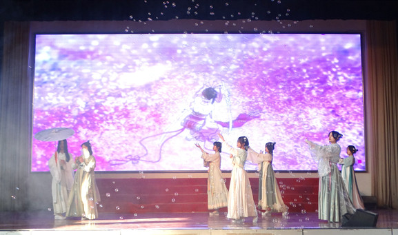 随后,一个个精彩的节目陆续登台。向快乐出发,精彩的世界等你加入;向未来出发,梦想的天空任你翱翔。舞蹈《向快乐出发》动感十足,热情洋溢,为全场观众带来青春的活力。“那是一首激情澎湃的诗篇,那是一片开满鲜花的风景,那是一曲气势磅礴的交响,那是一座壮志凌云的丰碑。”诗朗诵《青春中国》声情并茂,铿锵有力,将二中学子奋发有为的少年气概展现得淋漓尽致。流动的音符悦耳动听,美妙的歌声悠扬婉转,青年教师带来的歌曲串烧表演,如朗照松间的明月,如“随风潜入夜”的春雨,亦如厮杀驰骋的千军万马,让观众“沉醉不知归路”。《葫芦丝串烧》《艺术歌曲大联唱》激情飞扬,活力四射,充分显示了青春学子厚实的中英日语言功底、出色的艺术天赋……参演节目精彩纷呈,为全校师生送上了一场别开生面的视听盛宴。