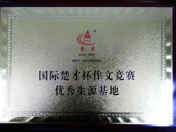 今年4月,从第34届武汉国际“楚才杯”作文竞赛全国高中生总决赛中传来好消息,我校曹翼、刘超、陈玉娟、李博轩同学获得全国一等奖,刘桃梅、王文超、李翔等36名同学获得二、三等奖。在2019年1月举行的国际“楚才杯”作文竞赛高中组颁奖典礼上,我校被评为该项比赛“优秀生源基地”,并有近80位同学获得该项赛事省级一、二、三等奖。