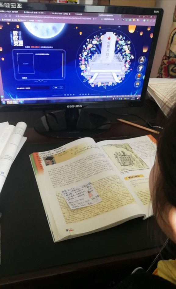 活动中,莘莘学子通过“云上”敬献花篮、花圈,进入网络纪念堂查看学习革命英烈的感人事迹,留下自己的内心独白、殷切寄语等方式,表达对革命英烈的崇敬之心、感念之情和传承之志。