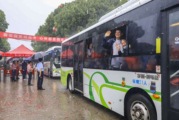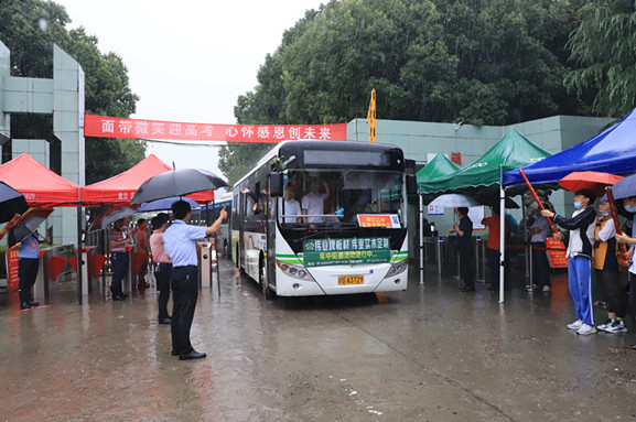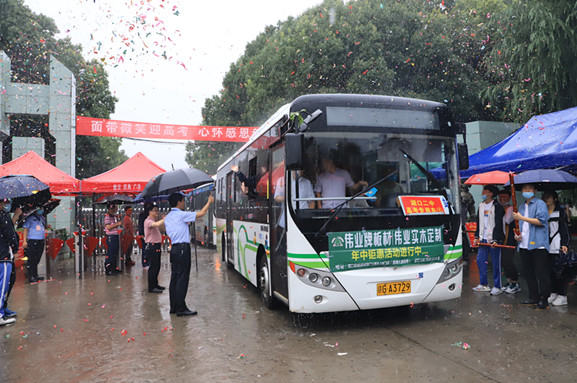 8时8分,随着开路警车鸣笛声响起,送考车队准时出发。我校校长杨健,党总支书记徐亿虎,高三年级分管领导、副校长吴晓冰,校长助理兼办公室主任彭惠群等班子成员来到学校大门口为考生们加油,向同学们竖起大拇指,殷切激励全体考生在考试中奋力拼搏,一展青春风采!“2020,高考必胜!”来自同学们真挚热情的鼓励让人信心满满!