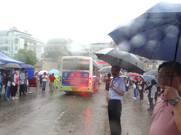 一大早,天空下着雨。今天,我们终于迎来了大家翘首以待的高考。